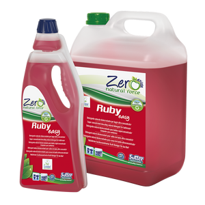 Szuper koncentrált tisztítószer, természetes eredetű szerves sav (citromsav) alappal. Ideális a fürdőszoba és a toalett tisztítására. A csapok, fürdőkádak, zuhanyzók, csempe stb. napi takarítására ajánlott. A Ruby Easy napi használatának köszönhetően lerakódás mentesítetté válik a kezelt felület. A termék a szennyeződések kialakulását is segít megelőzni. Növényi eredetű alapanyagokat tartalmaz (pl.: felületaktív anyagokat, savakat, oldószereket), amelyek a cukorrépa és kókuszolaj feldolgozásából származnak. Almaecet illatú, allergénmentes, foszfát és nikkelmentes termék. A javasolt hígítási arány szerint hígított termék nem minősül veszélyesnek (CLP jelölés mentes) a 1272/2008. rendelet szerint. Fújja a terméket a felületre. Dörzsölje meg nedves ruhával vagy szivacsruhával. Hagyja, hogy kifejtse a kívánt hatást, majd öblítse le
