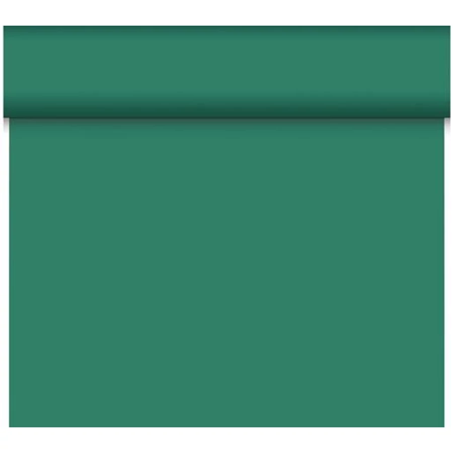 Erős és vízlepergető sötétzöld színű asztali futó a Duni kínálatából. Prémium minőségű, előre perforált, FSC tanúsítvánnyal rendelkező, komposztálható, környezetbarát termék, használata támogatja az ESG irányelveket.