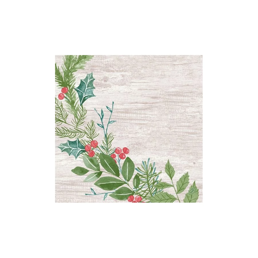 Karácsonyi mintás prémium szalvéta a Duni kínálatából. FSC minősítéssel rendelkező, környezetbarát termék, használata támogatja az ESG irányelveket.