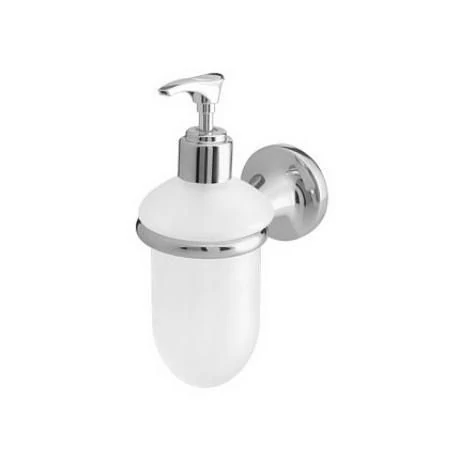 Falra szerelhető, pumpás, króm folyékony szappanadagoló, mattüveg betéttel.