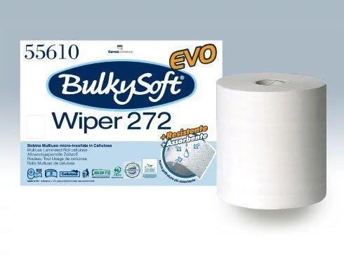 Kétrétegű, cellulóz, fehér színű, mikroprégelt, belsőmag-adagolású ipari környezetkíélő törlőpapír. EcoLabel tanúsítvánnyal rendelkezik, használata támogatja az ESG irányelveket.