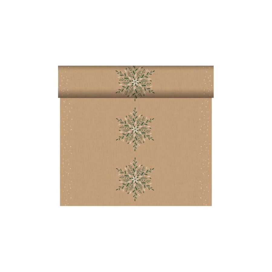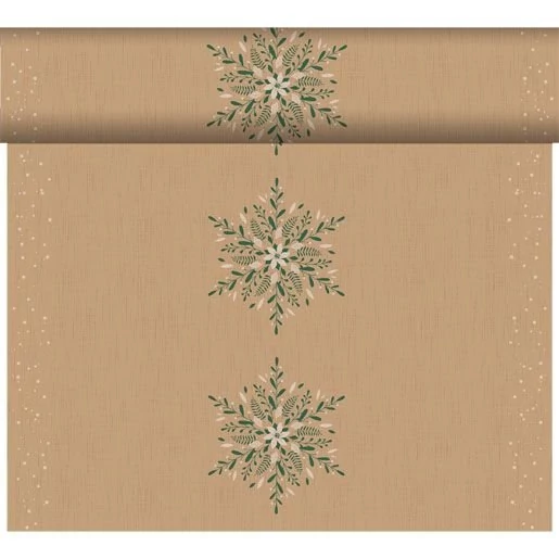 Design karácsonyi mintás, perforált asztali futó a Duni kínálatából. FSC minősítésű, környezetbarát termék, használata támogatja az ESG irányelveket.