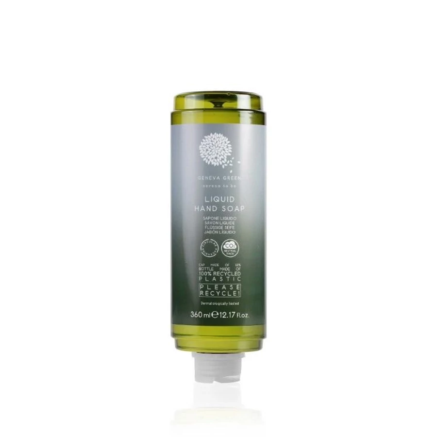 A környezetbarát Geneva Green folyékony kézi szappan gyengéden tisztítja a bőrt, enyhén illatosított formulája Aloe Vera kivonattal gazdagított. A teljes csomagolás 100%-ban újrahasznosítható, nem kerül hulladéklerakókba. Méretek: 6 x 17,1 cm. Használata támogatja az ESG irányelveket.