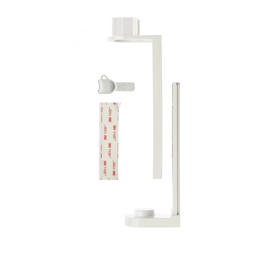 ABS fehér lopásgátló fali tartó pumpás termékekhez kétoldalú ragasztóval, kulccsal.