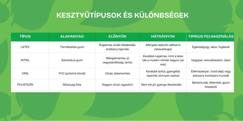 Kesztyűtípusok és különbségek