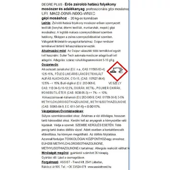 Zsírtalanító mosószer koncentrátum professzionális mosodák számára gépi mosáshoz.