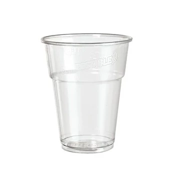 Növényi alapanyagú PLA bioműanyagból készült átlátszó pohár.