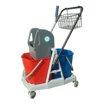 Kétvödrös takarítókocsi. Méret: 71 x 43 x 93 cm. 2 db 17 literes vödörrel.