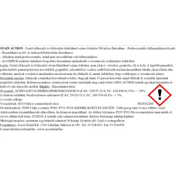 Textil előkezelő és folttisztító olyan színes foltokra, mint a kávé, vörösbor, gyümölcs, fű és kóla.