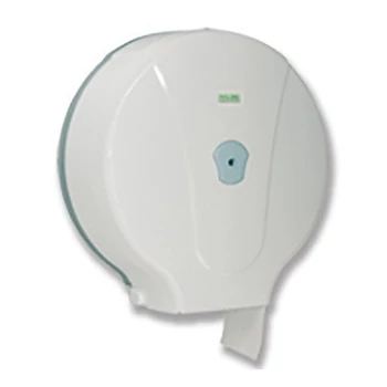 Fehér színű, műanyag közületi toalettpapír adagoló, falra szerelhető.