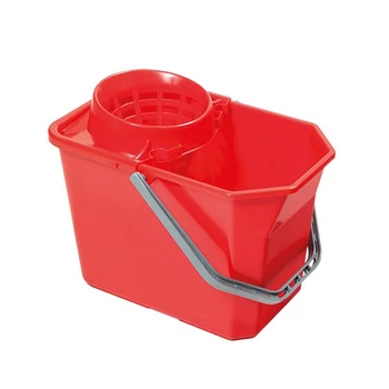 Szögletes felmosó vödör kicsavaró kosárral. Hagyományos spagetti szálas felmosó fejekkel használható.