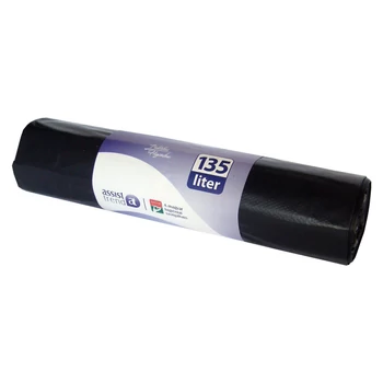 Szemetes kukák, hulladékgyűjtők bélelésére használható 135 l-es, újrahasznosított műanyagból készült szemetes zsák. Perforálás mentén téphető.