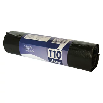 Szemetes kukák, hulladékgyűjtők bélelésére használható 110 l-es,újrahasznosított műanyagból készült szemetes zsák. Perforálás mentén téphető.