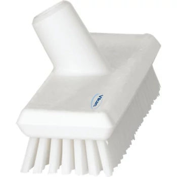 Rövid, kemény sörtéjű padlósúroló kefe vízátfolyós nyélrögzítéssel. Ha vízátfolyós nyelet használunk, akkor a víz a kefe sörtéi között a padlóra áramlik. Segítségével makacs, letapadt szennyeződést is el lehet távolítani a padló vagy fal felületről. | |