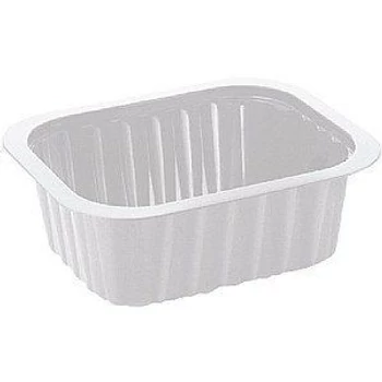 Fehér színű, műanyag , egy részes fóliázható tálka.