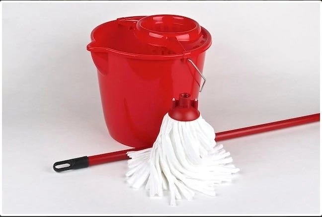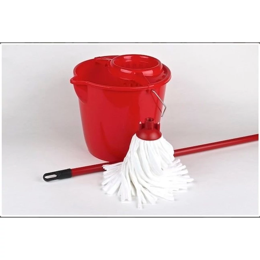 Felmosó vödör fém füllel, kicsavaró kosárral, nyéllel és felmosó fejjel. Padló általános kézi tisztítására alkalmas.