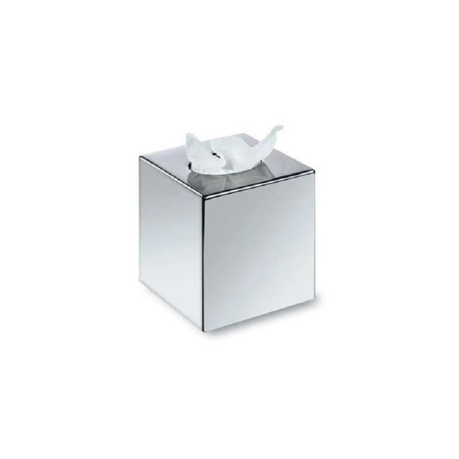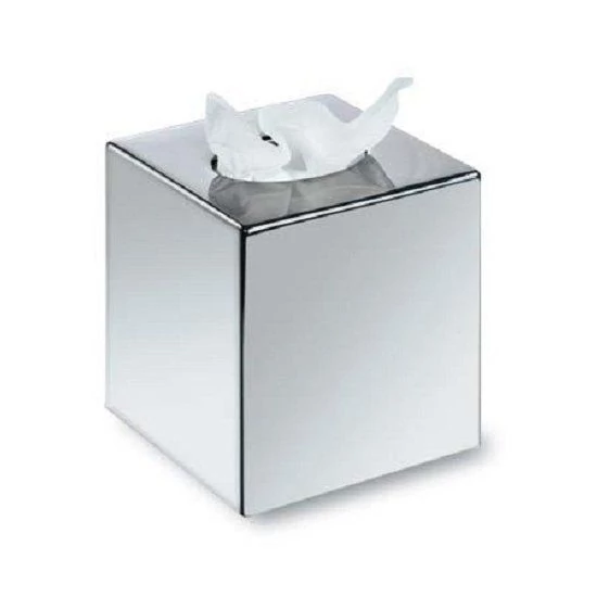 Kocka alakú, króm kozmetikai törlőkendő tartó. Falra szerelhető, könnyen utántölthető. Használatával a szállodai fürdőszobákban biztonságosan és higiénikusan biztosítható a vendégek számára a kozmetikai törlőkendő.