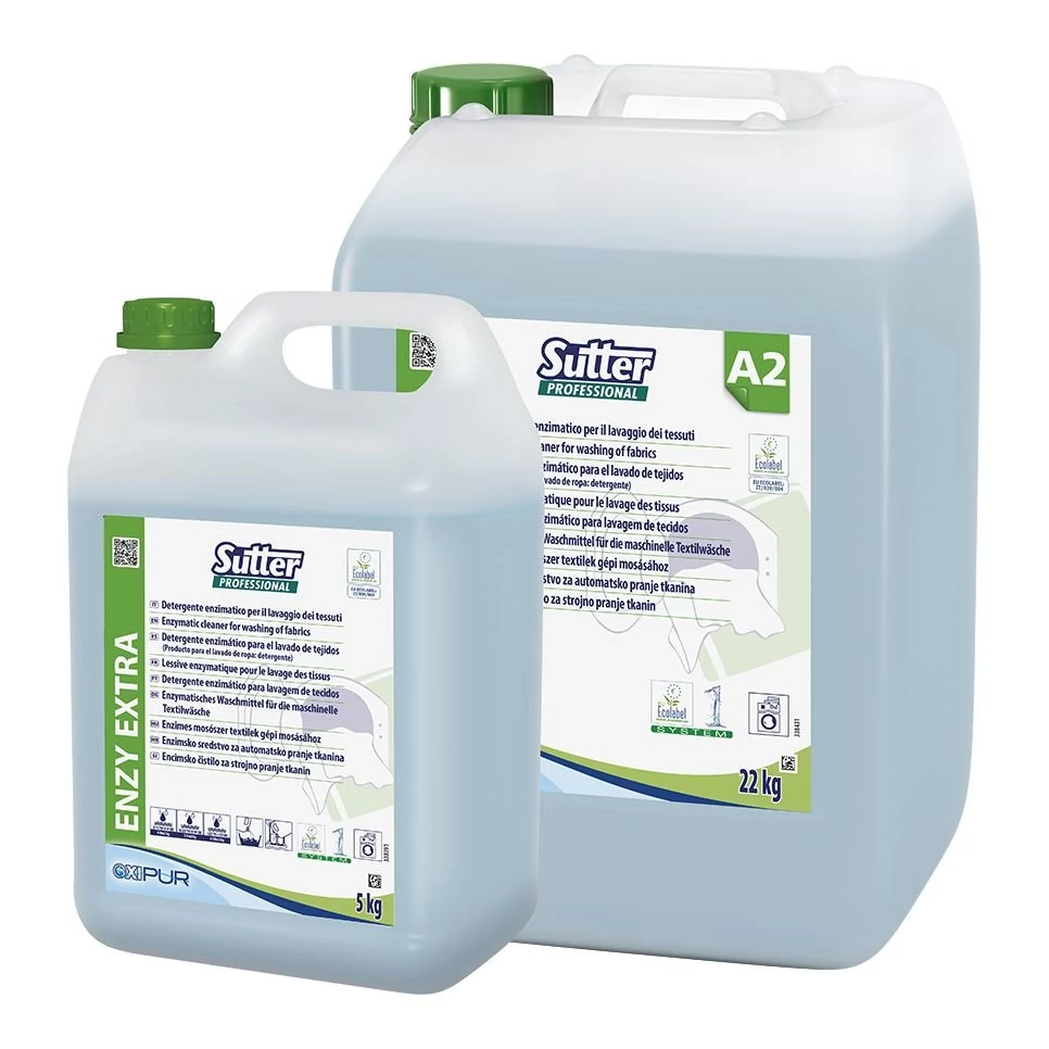 Környezetbarát, nagy hatékonyságú enzimes mosószer koncentrátum, mely kíméli a szöveteket. Alacsony hőmérsékleten is kiváló tisztító hatással, kellemes, hosszan tartó illattal. Ajánlott mindenféle textília tisztításához. Enzimatikus hatása különösen alkalmas a szerves anyagokkal szennyezett (pl.: vér, széklet, stb.) textíliák tisztítására.Az Enzy Extra formulája egy új enzimösszeállítást tartalmaz, amely proteáz és amiláz alapú, ennek köszönhetően növeli a szennyeződéseltávolító hatást. Az új enzimkeverék hatékonyságát minden mosási ciklusban tesztelték, és kiváló eredményeket hozott még alacsony hőmérsékleten is. Különleges összetevőinek köszönhetően kíméletes a bőrhöz, nem okoz bőrirritációt. Foszfáfmentes. Az Oxipur termékcsalád része, melynek Ecolabel minősítésű elemeivel komplett környezet-, és bőrbarát mosószersor állítható össze. Ecolabel tanúsítvánnyal rendelkező termék, melynek használata támogatja az ESG irányelveket.