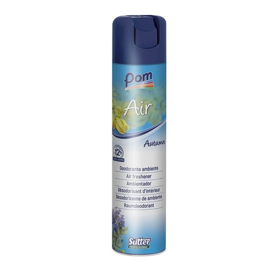 Légfrissítő hosszan tartó hatással, amely kellemes, tartós illatot hagy maga után. Élénk és felfrissítő illat, éppúgy, mint maga az ősz, amely a bergamot, a citrusos gyümölcsök és a tenger illatának energikus kombinációjával nyit, majd az ylang-ylang és a jázmin elegáns virágcsokrában folytatódik. Az alapillat a könnyed erdők és a borostyán illatának hatásos keveréke. Hajtógáz nélküli, sűrített levegővel működő aerosol, kíméletes az ózonréteghez. A termékcsalád további 3 illattal rendelkezik: Summer, Spring, Winter. A Pom termékcsalád kifejezetten az egységes illatosítás mestere: légfrissítők, tisztítószer és esszencia is elérhető a kínálatunkban.
