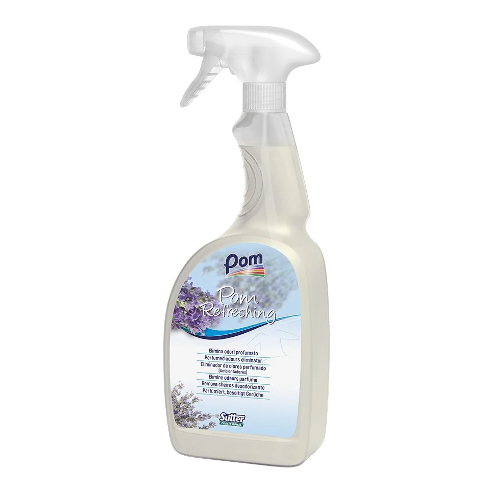 Textil és kárpit szagtalanító. Nem hagy foltot a textílián. Aktív formula, amely tökéletesen semlegesíti a kellemetlen szagokat, mivel a kellemetlen szagok (szmog, dohányfüst, konyhai szagok, állatok szagai) felületén fejti ki hatását. A terméket közvetlenül a textíliára, vagy egyéb felületre (kárpit, ruha, autóbelső) kell permetezni (anélkül, hogy a textília túlságosan nedves legyen). Kényes textíliák esetében (pl. selyem, stb.) előzetesen próbát kell végezni a textília sarkán. A Pom termékcsalád kifejezetten az egységes illatosítás mestere: légfrissítők, tisztítószer, esszencia is elérhető a kínálatunkban.
