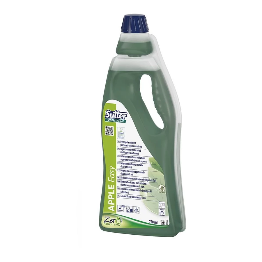 Környezetbarát, szuperkoncentrált, univerzális, illatosított általános tisztítószer kemény felületek napi takarítására. Kiválóan alkalmas súrológépekhez. Hajók, csónakok és egyéb közlekedési eszközök belső felületeinek tisztítására is alkalmas. Hosszan tartó, zöldalma illatú. Allergénmentes. 1 kupak = 30 ml = 10 liter Zero Apple Easy felhasználásra kész általános tisztító szer. 750 ml koncentrátum 25 vödör = 250 liter felmosószer készítésére alkalmas!