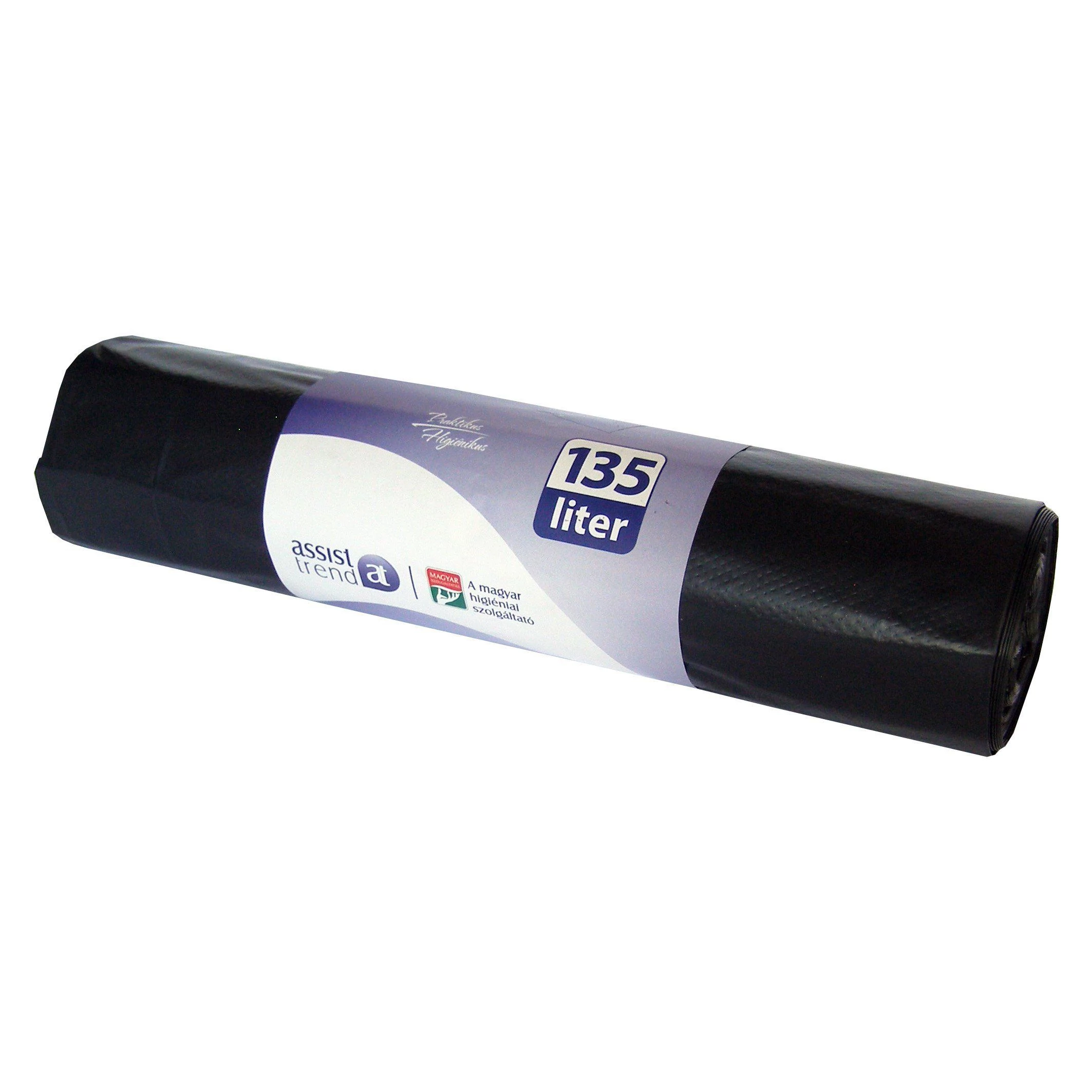 Szemetes kukák, hulladékgyűjtők bélelésére használható 135 l-es, újrahasznosított műanyagból készült szemetes zsák. Perforálás mentén téphető.Használatával higiénikusan és könnyen üríthető a szemetes vödör.