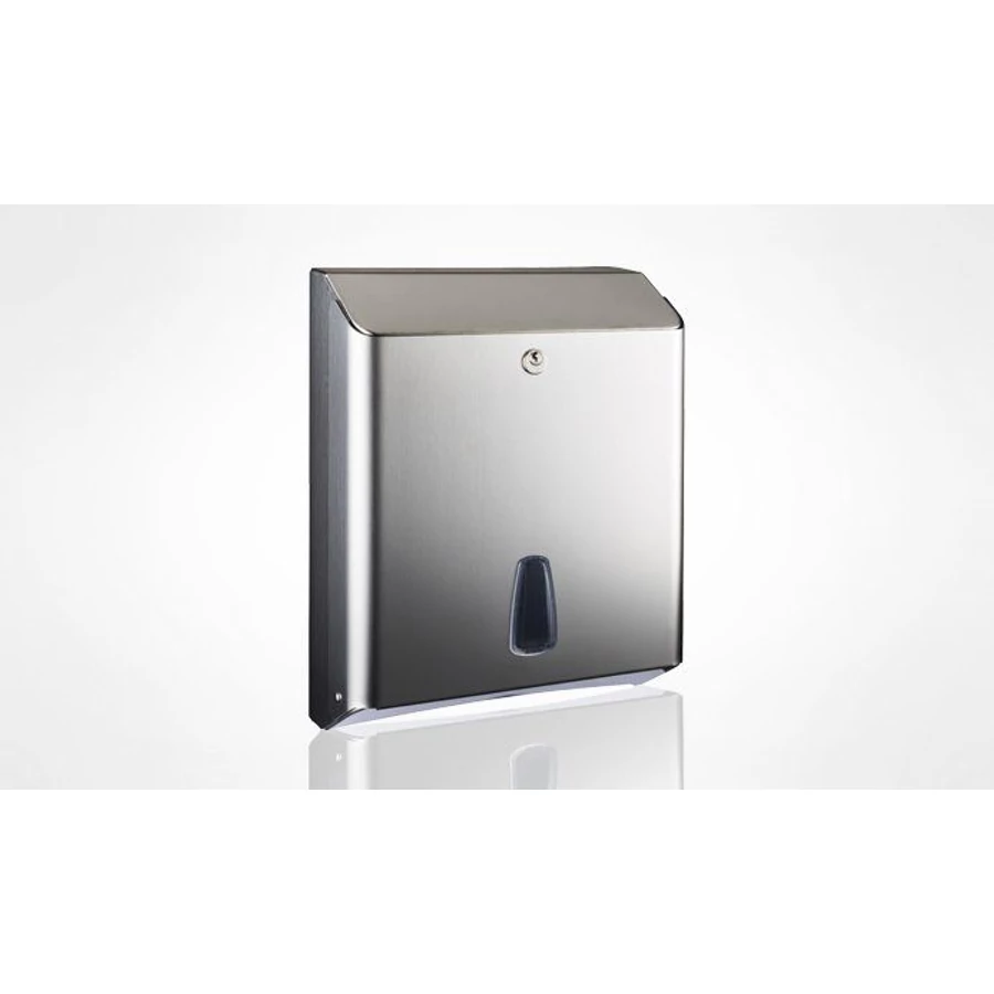 Falra szerelhető inox hajtogatott kéztörlő adagoló, Z, V és C hajtogatású kéztörlőkhöz.