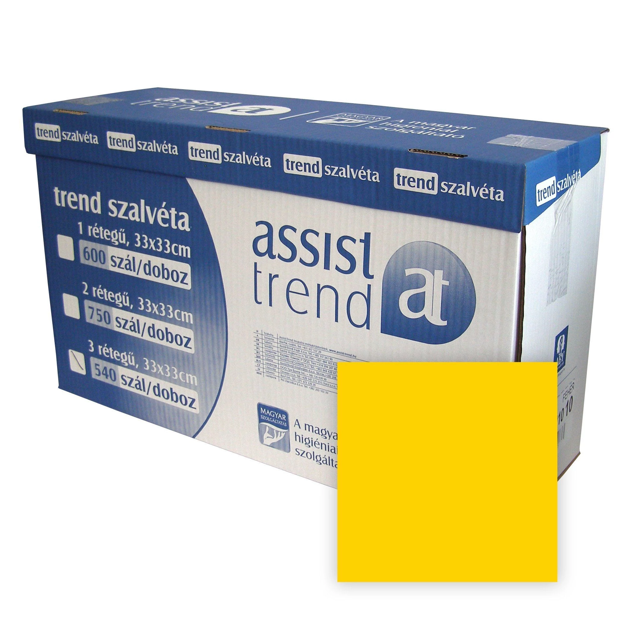 Kétrétegű, nagy kiszerelésű, sárga színű Trend éttermi szalvéta.