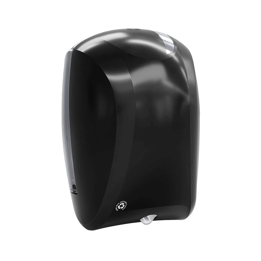 Belsőmagos tekercses kéztörlő adagoló újrahasznosított műanyagból - fekete színű. Az adagolóba tehető maximális tekercsátmérő 21 cm, tekercsszélesség 23 cm. Zárható, kulcs az adagoló tartozéka. Adagoló méretei: Szélesség: 24 cm, Magasság: 35 cm, Mélység: 24 cm.Környezetbarát, újrahasznosított műanyagból készült, használata támogatja az ESG irányelveket.