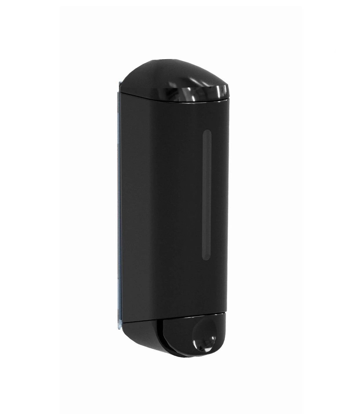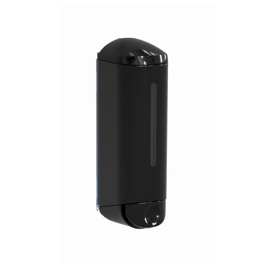 Fekete színű folyékony szappan adagoló, nagy kiszerelésű folyékony szappannal utántölthető. Az adagoló kulccsal zárható. Közösségi mosdóhelyiségekbe ajánlott. Űrtartalma 0,25l. Az adagoló méretei: 185x50x75mm.
