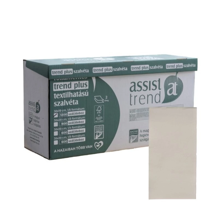 Nagy kiszerelésű, 2 rétegű, 1/8-os formátumú textilhatású szalvéta pezsgő színben. Praktikus, visszazárható, fóliamentes doboza megvédi a szalvétát és egyben környezetünk védelméhez is hozzájárul. FSC minősítésű, környezetbarát alapanyagú, használata támogatja az ESG irányelveket.