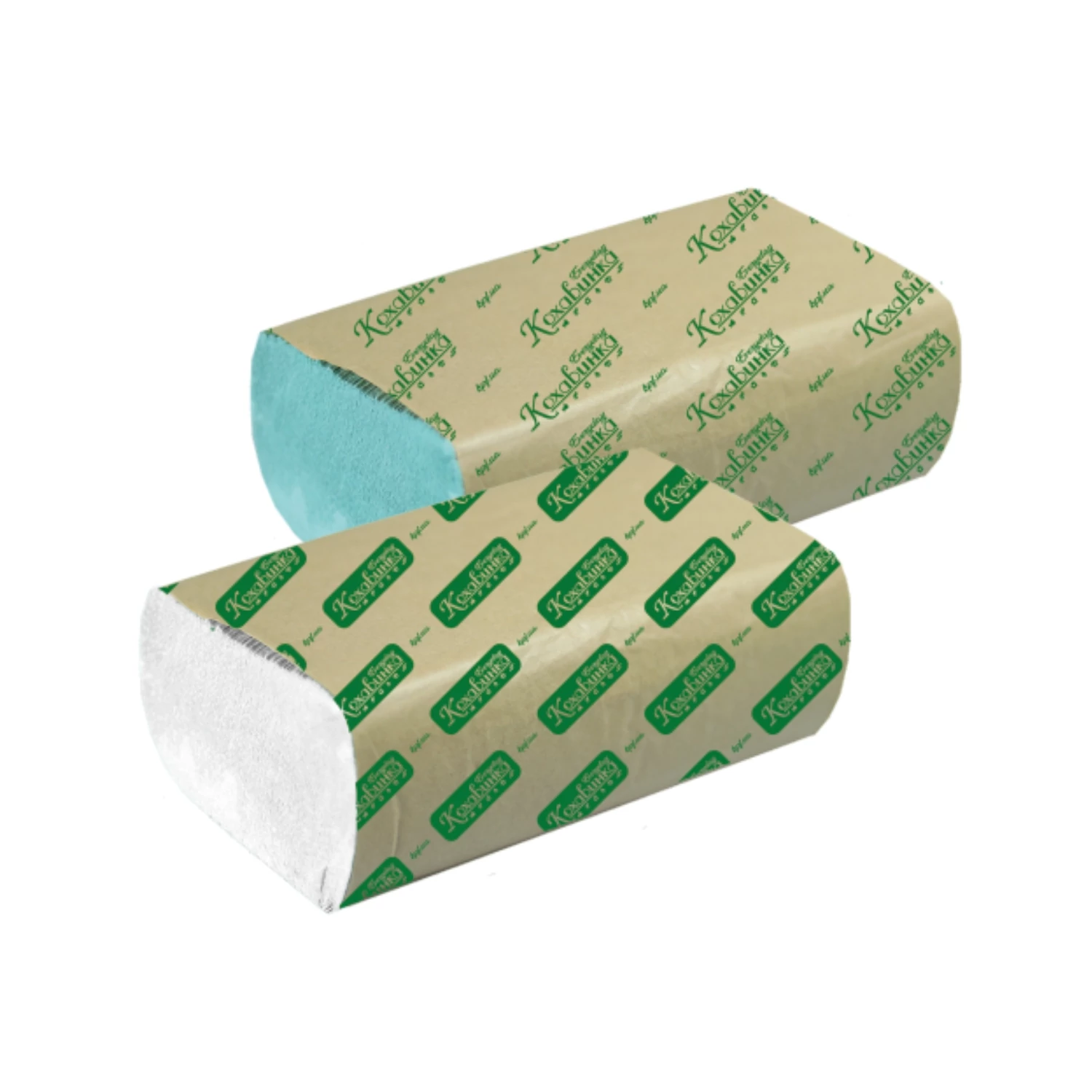 1 rétegű, V hajtogatott, zöld színű, újrahasznosított alapanyagból készült kéztörlő.