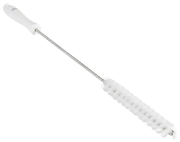 20 mm átmérőjű csőtisztító amely a kis átmérőjű csövek és nagyon szűk terek között használható. A sörték egy csavart, rozsdamentes acél rúd vázon vannak, ami kémiaialag ellenálló és erős. Példa a használatra; kolbász töltelék csövek.